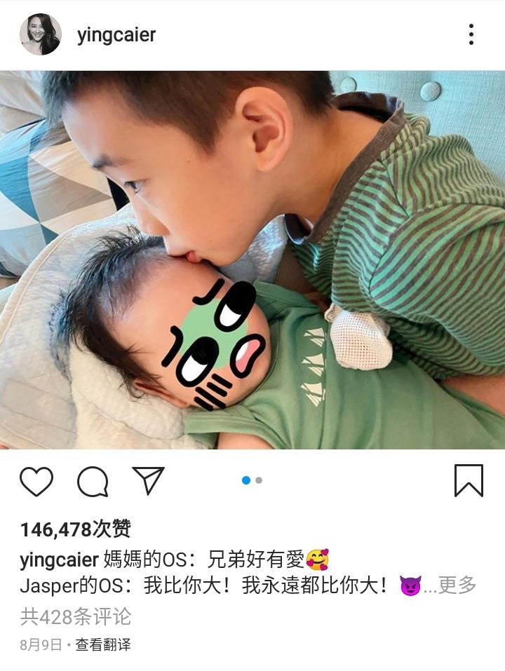 不过,应采儿在今年5月29号突然宣布生下了二胎,对此改变了不生二胎的主意。8月9号,她还在某社交平台上晒出了Jasper与二胎的合照,照片中的jasper小心翼翼地亲吻着自己的弟弟,虽然打着码看不出弟弟长什么样,但这么有爱的一幕也是十分温馨。